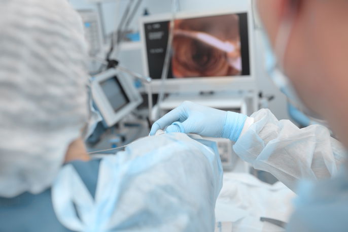 Durante a broncoscopia, o médico introduz o broncoscópio, que é um tubo fino com uma câmera na ponta, através do boca ou nariz, que permite a visualização das estruturas das vias aéreas que são transmitidas para um computador.