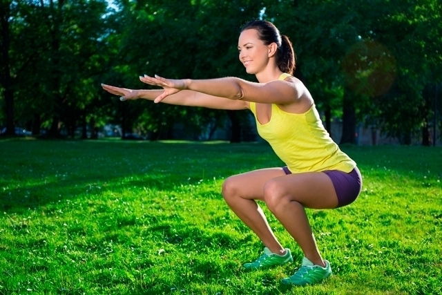 Para mantener mejor el equilibrio, se recomienda estirar los brazos hacia adelante. Vea cómo realizar otros tipos sentadillas.