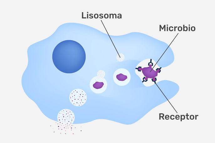 - Muerte y digestión de la partícula englobada, consiste en la activación de mecanismos celulares, capaces de promover la muerte del agente infeccioso englobado, que ocurre debido a la unión del fagosoma con los lisosomas, que es una estructura presente en las células compuesta por enzimas, dando origen a la vacuola digestiva, donde se origina la digestión intracelular.