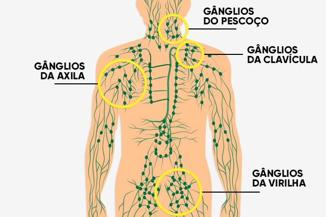 Os gânglios linfáticos são pequenas glândulas pertencentes ao sistema linfático, que estão espalhados pelo corpo e que são responsáveis por filtrar a linfa, recolhendo vírus, bactérias e outros organismos que podem provocar doenças. Uma vez nos gânglios linfáticos, esses micro-organismos são eliminados pelos linfócitos, que são células de defesa importantes do organismo.