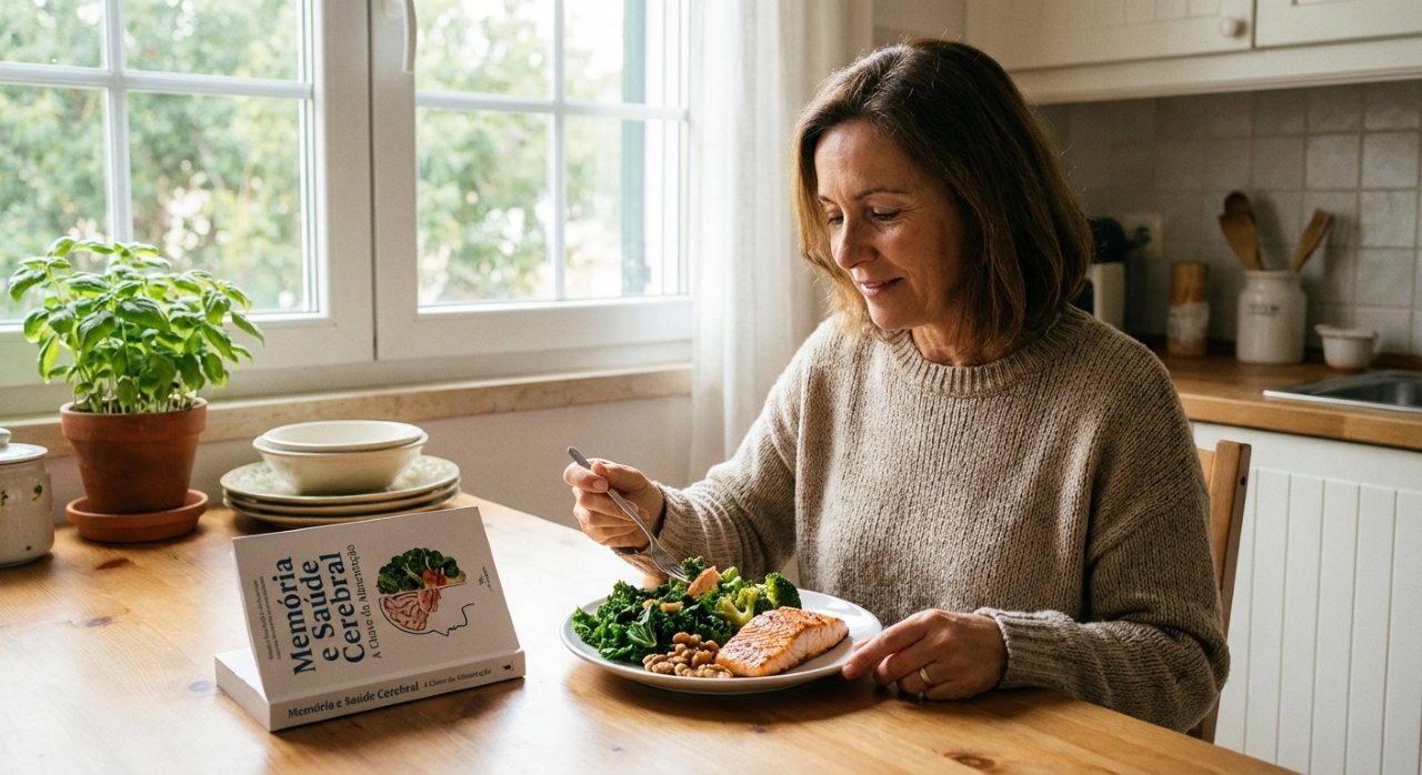 Alimentação equilibrada com peixes ricos em ômega-3, vegetais verde-escuros e oleaginosas fornece nutrientes essenciais para fortalecer a memória e proteger a saúde cerebral ao longo da vida.
