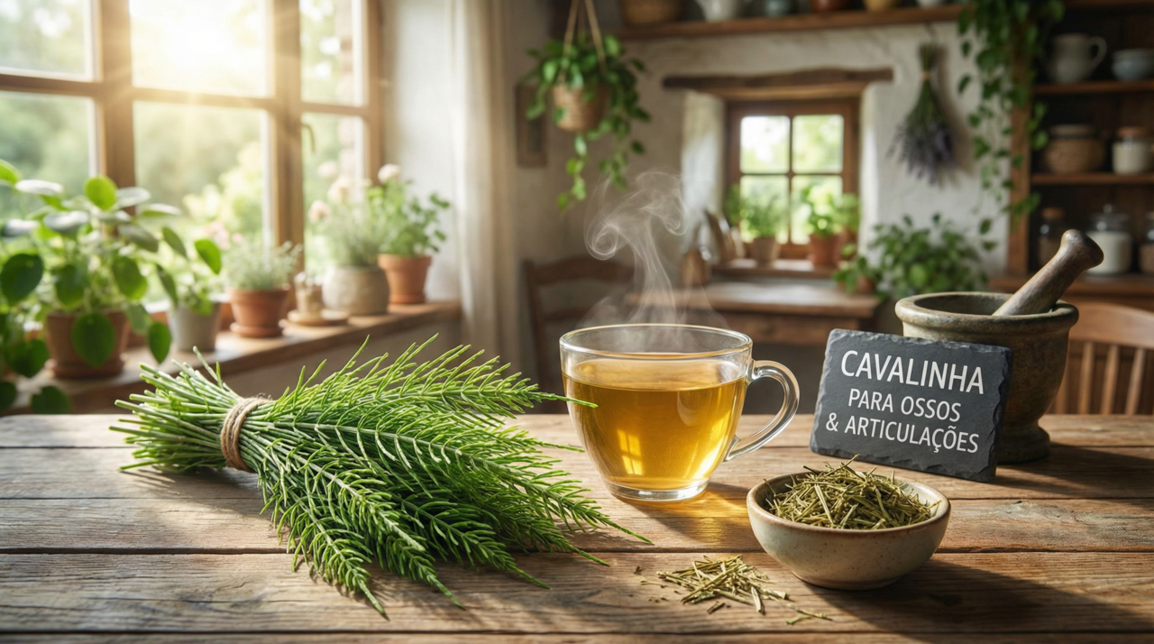 A cavalinha, conhecida cientificamente como Equisetum arvense, é uma planta medicinal rica em silício que fortalece o tecido ósseo e estimula a formação de cartilagem nas articulações. Seu alto teor de minerais biodisponíveis e compostos bioativos ajuda a reduzir a dor articular, acelerar a recuperação de fraturas e prevenir a degeneração da cartilagem, tornando-se uma aliada natural para pessoas com problemas articulares, osteoporose ou lesões ósseas.
