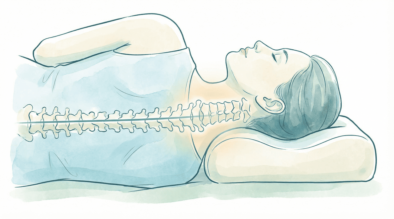 Uma dica prática é colocar um travesseiro entre os joelhos ao dormir de lado. Isso ajuda a manter a coluna inteira alinhada, reduzindo a tensão que se acumula desde a lombar até o pescoço. Com o tempo, essa combinação tende a diminuir os episódios de dor ao acordar.