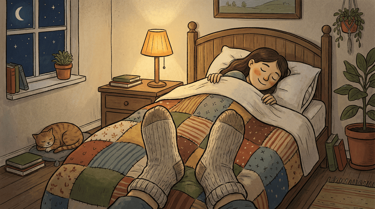 Dormir de meias pode parecer um hábito incomum, mas a ciência mostra que aquecer os pés na hora de dormir ajuda o corpo a adormecer mais rápido, aumenta o tempo total de sono e reduz os despertares durante a noite. Isso acontece porque os pés aquecidos facilitam um processo natural de regulação da temperatura corporal que sinaliza ao cérebro que é hora de descansar. Entender como esse mecanismo funciona pode transformar a qualidade do seu sono com uma mudança simples na rotina.