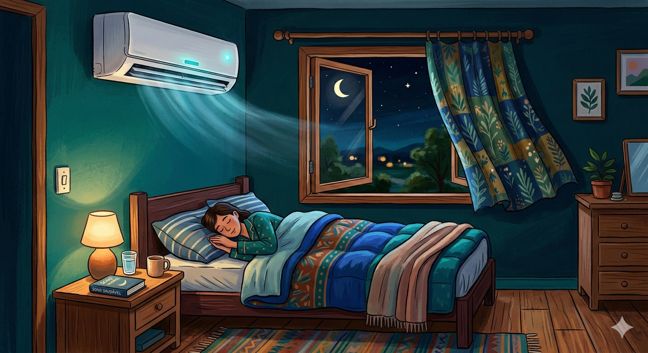 A boa notícia é que não é preciso abrir mão do conforto térmico para respirar melhor durante o sono. A combinação do ar-condicionado com alguma forma de ventilação natural é a estratégia mais eficaz para quem busca temperatura agradável e ar renovado no quarto. Manter o aparelho regulado entre 18°C e 22°C, conforme recomendam especialistas em medicina do sono, e permitir uma pequena abertura na janela ou porta é suficiente para equilibrar a qualidade do ar.