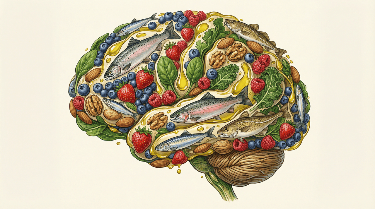 O cérebro consome cerca de 20% de toda a energia do corpo e depende de um fornecimento constante de nutrientes para funcionar bem. Substâncias como ômega-3, antioxidantes, vitaminas do complexo B e minerais atuam na comunicação entre os neurônios, na proteção contra danos celulares e na formação de novas conexões nervosas.