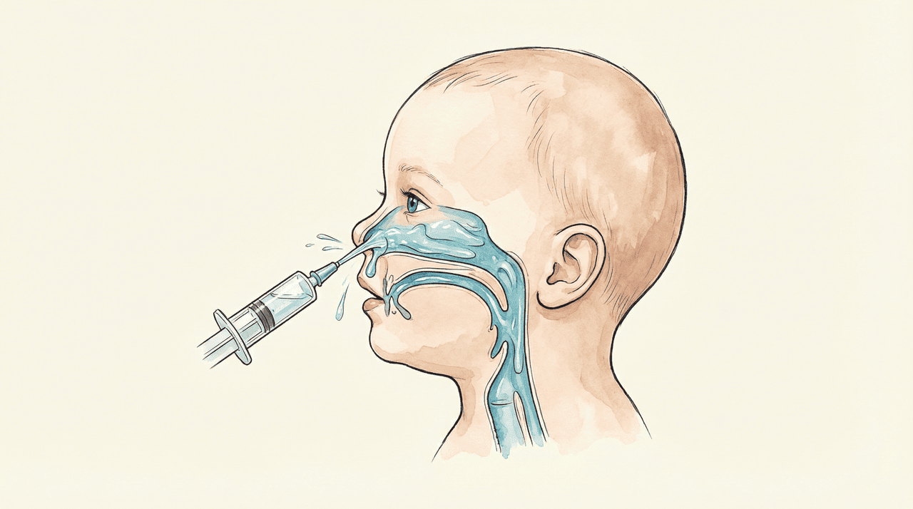 O soro fisiológico dilui o muco e facilita sua eliminação, sendo seguro até para recém-nascidos.
