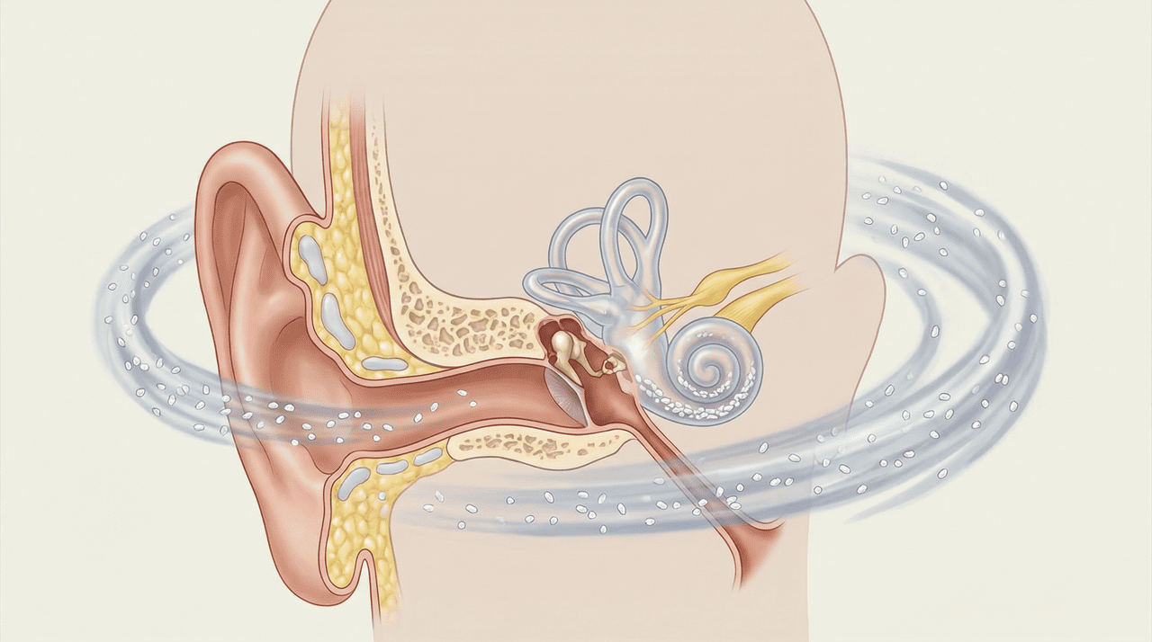 Dentro do ouvido interno existem estruturas que detectam os movimentos da cabeça e ajudam o cérebro a manter o equilíbrio. Quando pequenos cristais de cálcio, que normalmente ficam em uma região específica, se soltam e migram para os canais semicirculares, cada movimento da cabeça gera sinais confusos para o cérebro. Esse conflito de informações provoca a sensação de que tudo está girando, mesmo quando o corpo está parado.
