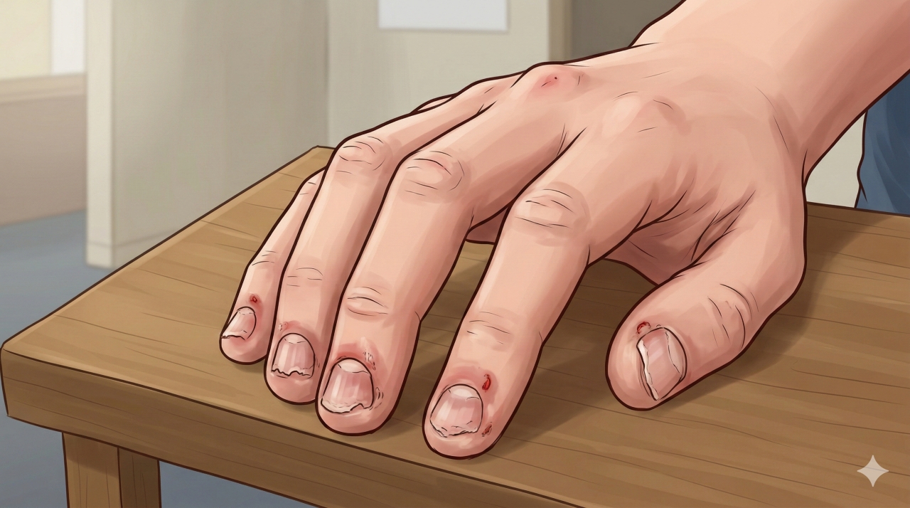 Unhas roídas e cutículas machucadas podem ser sinal de ansiedade e comportamento repetitivo ligado ao estresse.