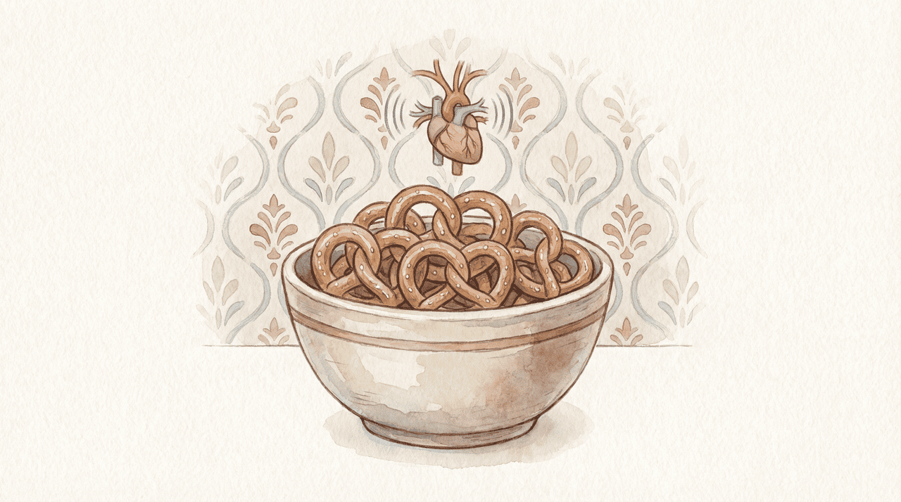 Entre os lanches que parecem inofensivos, o pretzel salgado é um dos que mais preocupam cardiologistas quando o assunto é pressão alta em idosos. Apesar de ser vendido como uma opção com baixo teor de gordura, esse petisco carrega uma quantidade de sódio que pode elevar a pressão arterial em poucas horas após o consumo. Para pessoas acima de 60 anos, que já apresentam maior risco cardiovascular naturalmente, entender por que esse lanche merece atenção é fundamental para proteger o coração no dia a dia.