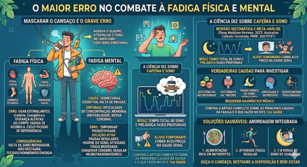 Esses achados reforçam que combater a fadiga física e a fadiga mental com estimulantes é uma estratégia contraproducente. O alívio temporário do cansaço cobra um preço alto na qualidade do sono e, consequentemente, na saúde geral.