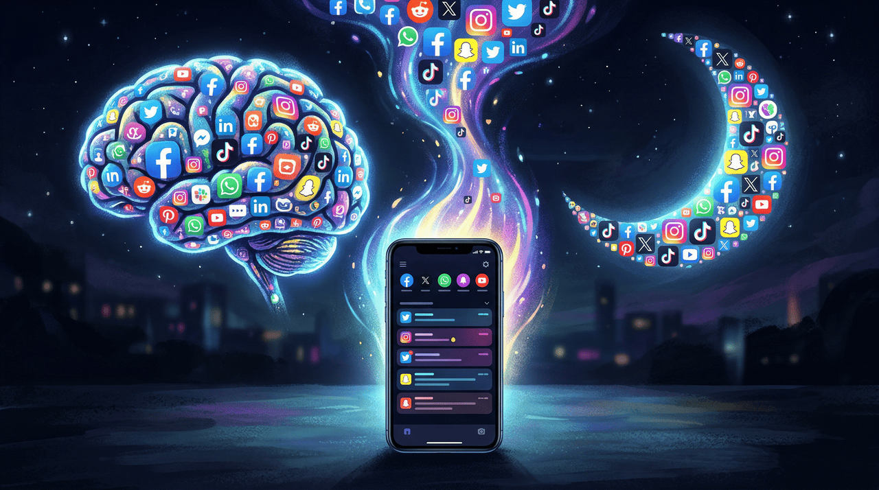 O uso prolongado de redes sociais, especialmente nas horas que antecedem o sono, cria um ciclo prejudicial para o organismo. A luz azul emitida pelas telas suprime a produção de melatonina e atrasa o início do sono, fazendo com que a pessoa demore mais para adormecer e durma menos horas no total. Além disso, o conteúdo emocionalmente estimulante das redes mantém o sistema nervoso ativado quando ele deveria estar se acalmando.