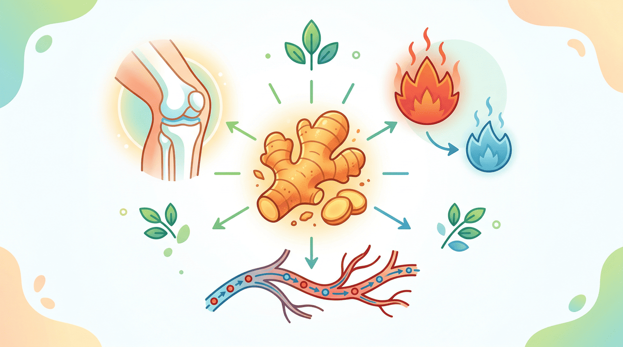 O gengibre possui cerca de 400 compostos naturais com potencial anti-inflamatório. Essas substâncias atuam bloqueando a produção de moléculas que desencadeiam processos inflamatórios no corpo, como a proteína C-reativa e o fator de necrose tumoral. Esse mecanismo é semelhante ao de alguns medicamentos anti-inflamatórios convencionais, porém de forma mais suave.