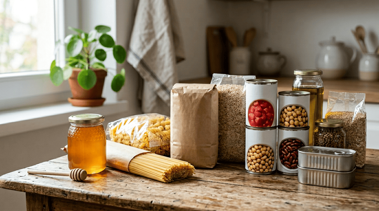 - Mel e açúcar: considerados praticamente eternos; o mel pode cristalizar, mas não estraga