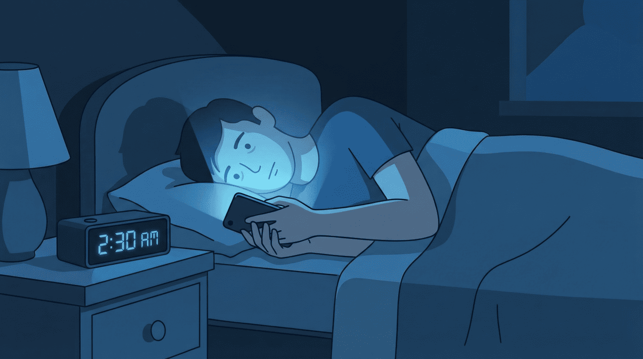 A luz azul emitida por celulares, tablets e computadores interfere na produção de melatonina, o hormônio que sinaliza ao corpo que é hora de descansar. Quando você fica exposto a essa luz até o último minuto antes de dormir, o cérebro entende que ainda é dia e demora mais para iniciar o ciclo de sono.