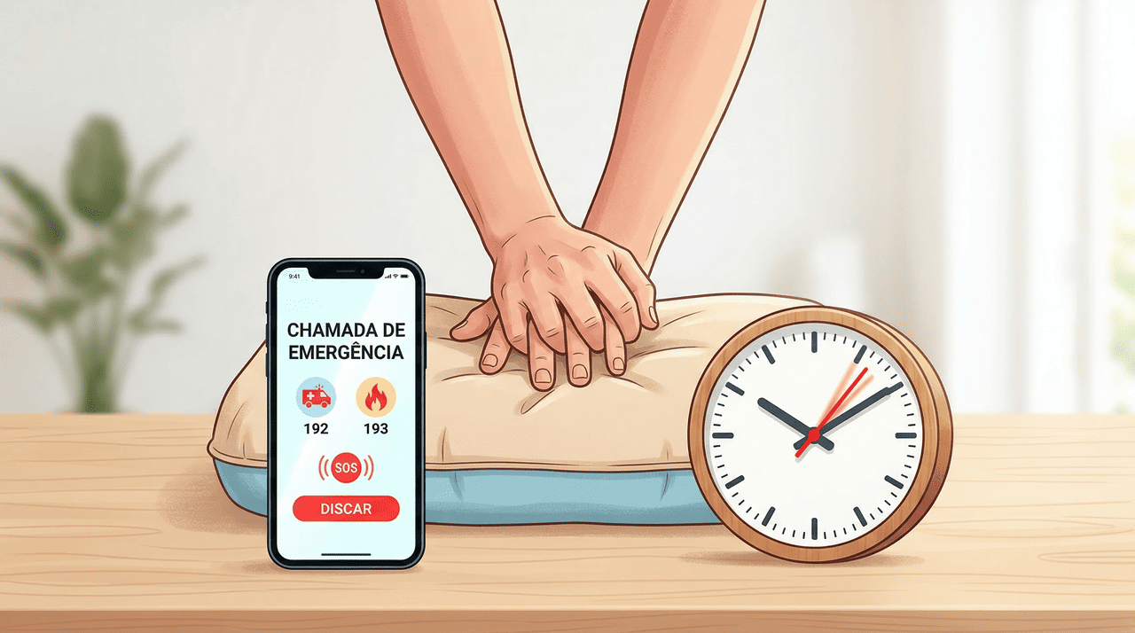 Ligue imediatamente para o SAMU (192). Se possível, coloque no viva-voz para receber orientações enquanto inicia o atendimento.