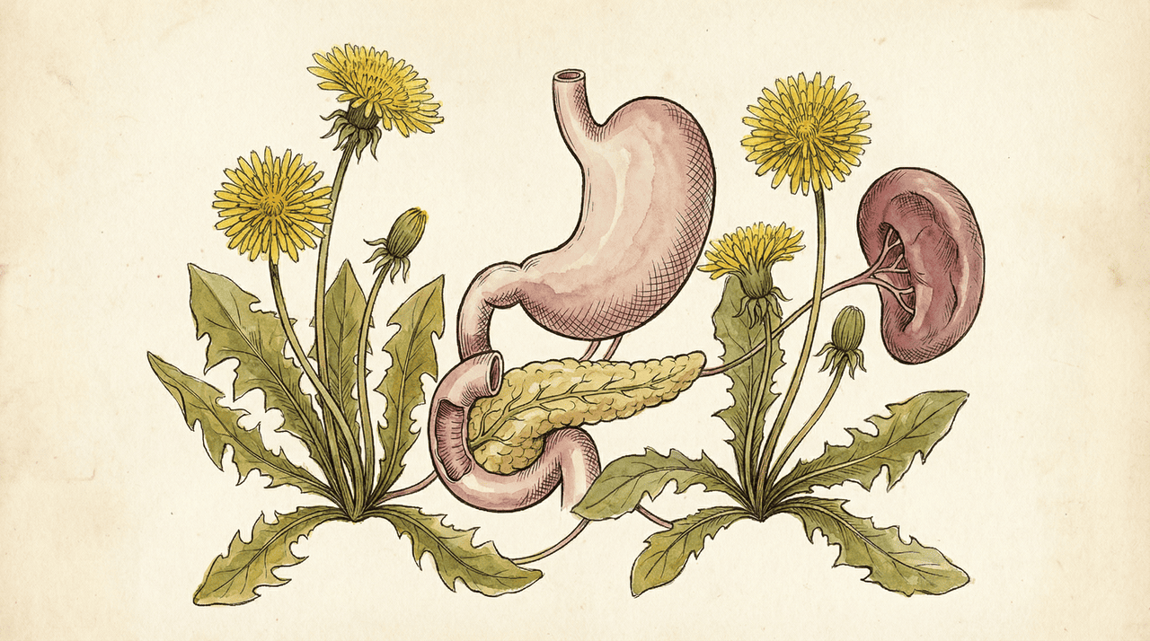Além disso, a raiz do dente-de-leão contém um tipo de fibra chamada inulina, que funciona como alimento para as bactérias benéficas do intestino. Esse efeito contribui para o equilíbrio da flora intestinal e favorece a absorção de nutrientes, beneficiando indiretamente o baço e o pâncreas, que dependem de um sistema digestivo saudável para funcionar bem.