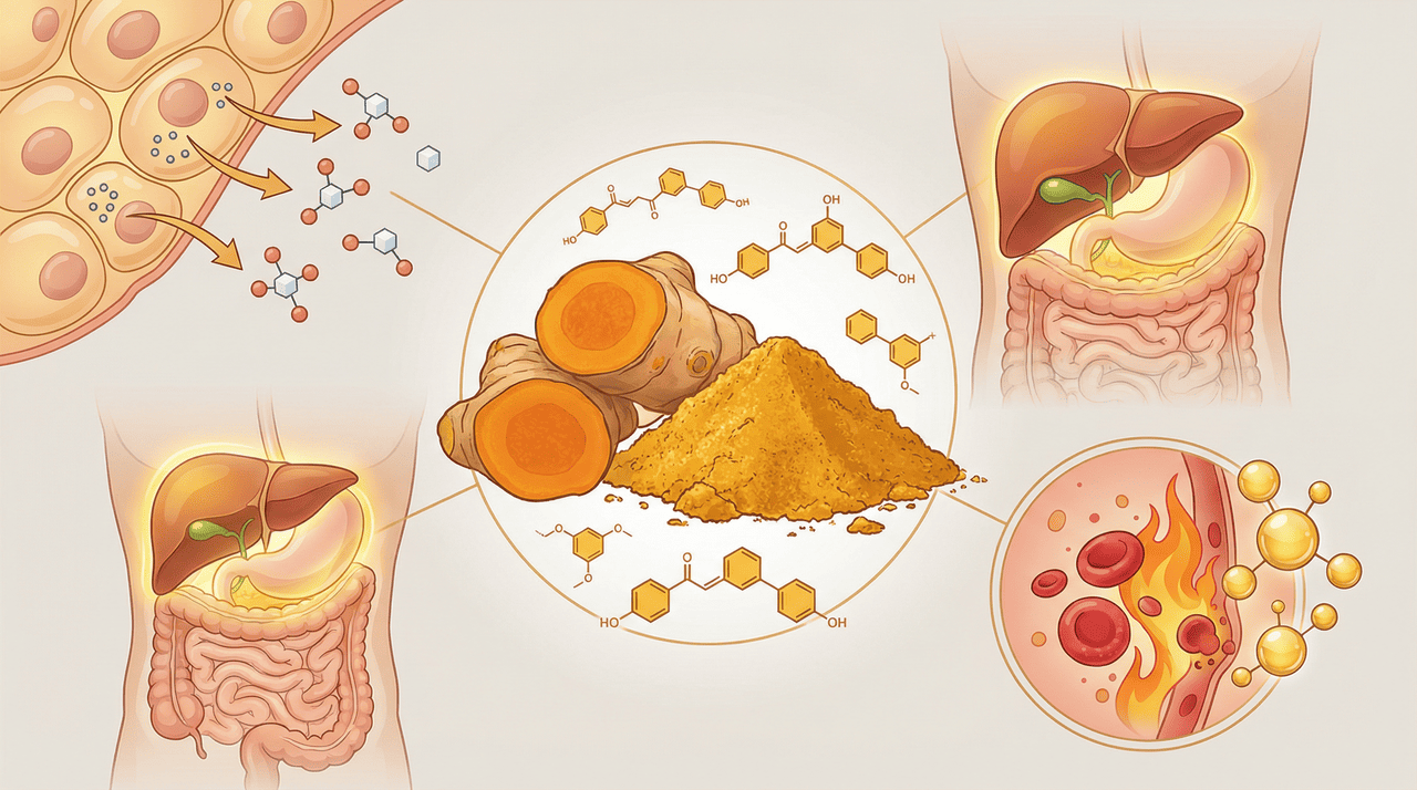 A inflamação crônica está por trás de diversas doenças, como problemas cardíacos, artrite e até condições metabólicas. A curcumina age inibindo vias inflamatórias importantes no organismo, o que reduz a produção de substâncias que provocam e mantêm processos inflamatórios no corpo.