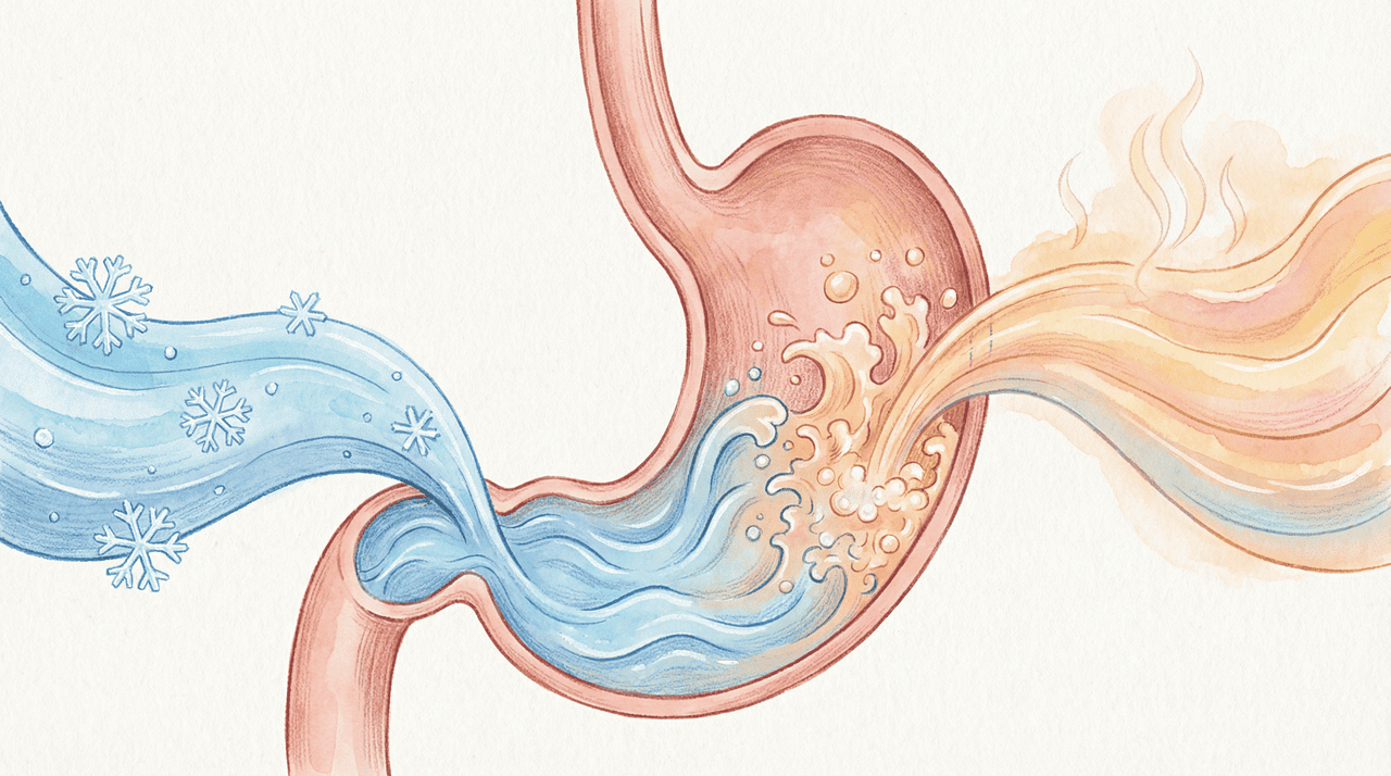 O estômago possui receptores sensíveis à temperatura que influenciam diretamente os movimentos musculares responsáveis pela digestão. Quando um líquido frio chega ao estômago, esses receptores podem provocar uma redução temporária das contrações gástricas, o que tende a retardar o esvaziamento do conteúdo estomacal para o intestino.