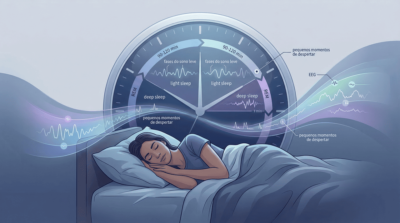 Durante a noite, o organismo passa por ciclos que alternam fases de sono leve, sono profundo e sono com movimento rápido dos olhos, a fase em que os sonhos mais vívidos ocorrem. Cada ciclo dura em média entre 90 e 100 minutos, e ao final de cada um deles o cérebro passa por um breve momento de ativação que pode ou não resultar em despertar consciente.
