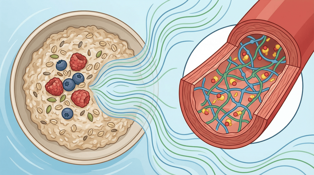 A betaglucana é uma fibra solúvel que, ao entrar em contato com a água no intestino, forma uma espécie de gel. Esse gel captura parte dos ácidos biliares — substâncias produzidas pelo fígado a partir do colesterol — e os elimina pelas fezes. Para repor esses ácidos, o fígado precisa retirar mais colesterol do sangue, o que resulta na redução do LDL.
