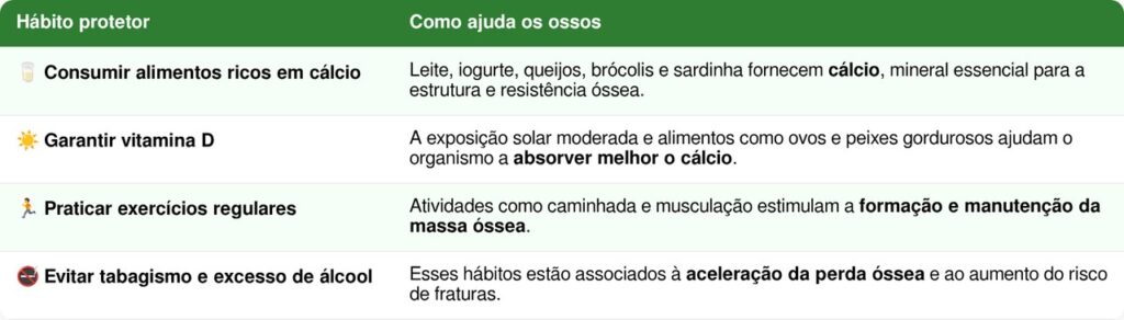Outros hábitos que complementam a proteção dos ossos