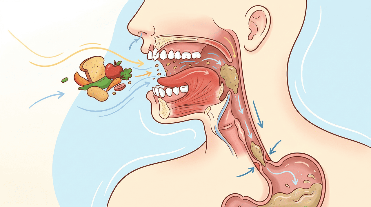 A mastigação é a primeira etapa da digestão. Ao triturar o alimento e misturá-lo com a saliva — que contém enzimas que já começam a quebrar carboidratos — o corpo prepara o bolo alimentar para ser processado com eficiência pelo estômago e pelo intestino. Quando essa etapa é apressada, fragmentos grandes de comida chegam ao estômago exigindo uma produção excessiva de ácido gástrico.
