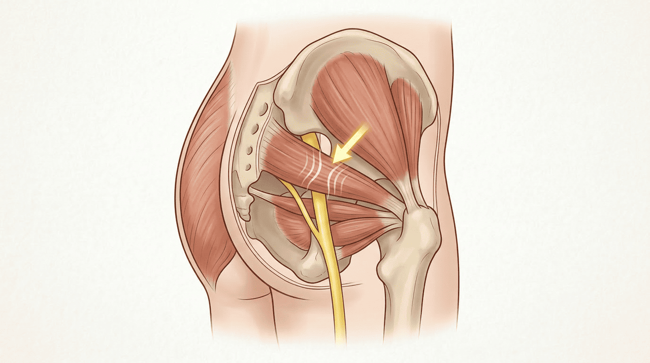 A síndrome do piriforme acontece quando o músculo piriforme, localizado na região profunda do glúteo, fica tenso ou inflamado. Esse músculo passa muito próximo ao nervo ciático e, em algumas pessoas, o nervo atravessa o próprio músculo. Quando há tensão excessiva, o nervo é comprimido e surgem dor, formigamento e sensação de queimação que descem pela parte posterior da coxa.