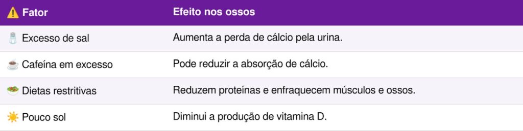 Além de incluir os alimentos certos, evitar alguns hábitos alimentares que prejudicam a absorção de cálcio é igualmente importante. Algumas práticas que podem comprometer a saúde óssea sem que a pessoa perceba incluem: