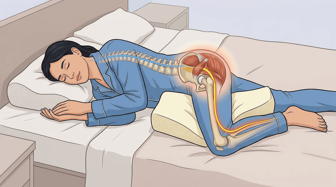 Quem convive com a síndrome do piriforme sabe que a noite pode ser o momento mais difícil do dia. Aquela dor profunda no glúteo, que às vezes irradia pela perna como uma queimação, parece intensificar justamente quando o corpo busca descanso. A boa notícia é que pequenos ajustes na posição de dormir e o uso estratégico de um travesseiro podem fazer diferença significativa no alívio dos sintomas e na qualidade do sono.