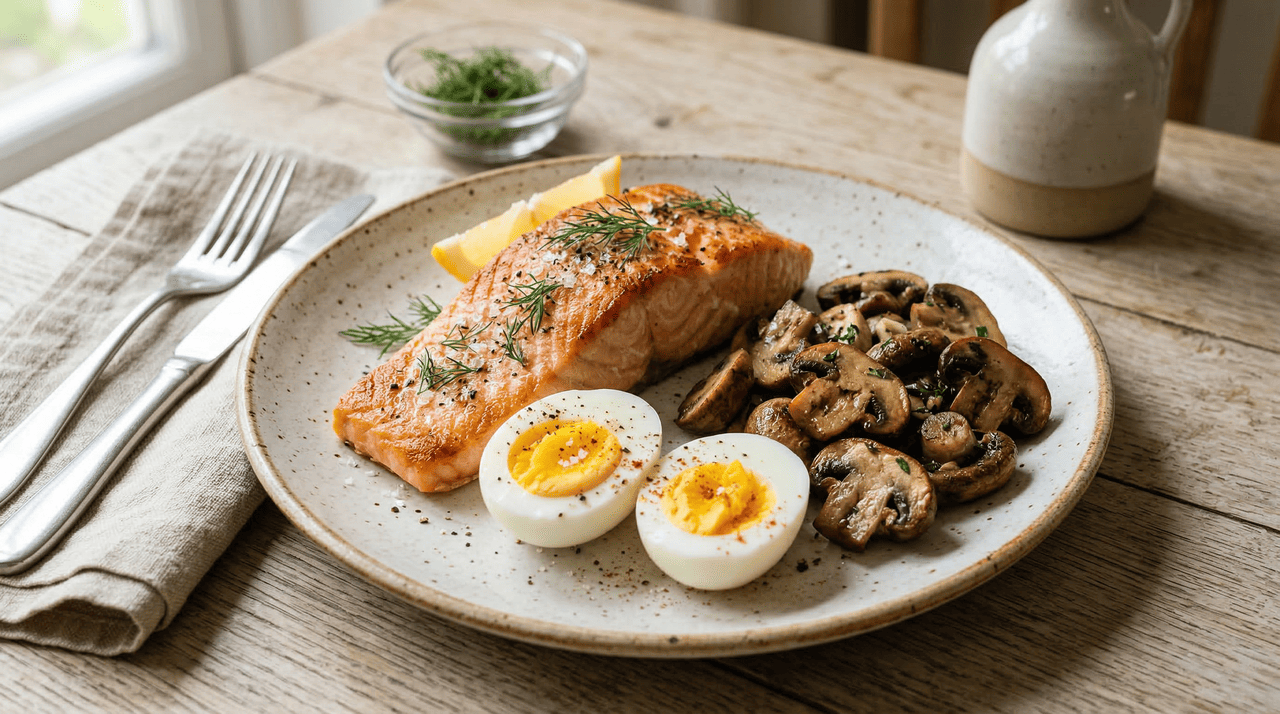 Alimentos como salmão, sardinha, gema de ovo e cogumelos são fontes naturais importantes dessa vitamina.
