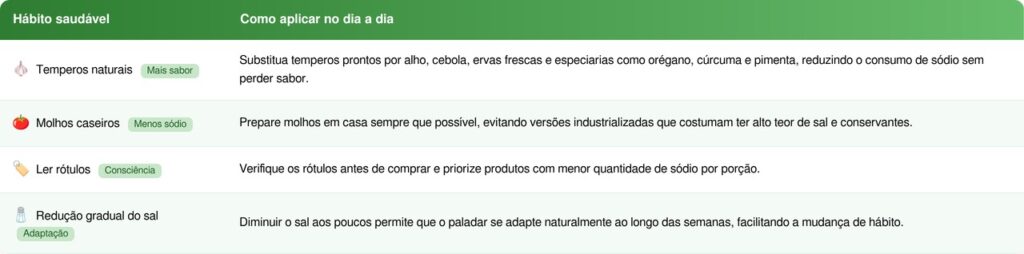 Evitar alimentos ricos em sódio escondido e fazer substituições inteligentes na cozinha são atitudes simples que podem ajudar a controlar a pressão arterial e reduzir o risco de complicações graves. Os melhores resultados aparecem quando essas mudanças alimentares são mantidas ao longo do tempo e combinadas com atividade física regular e acompanhamento médico.