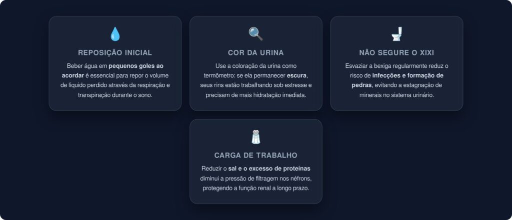 Algumas práticas podem ajudar a manter os rins funcionando bem e evitar a sobrecarga que a desidratação crônica pode causar. Confira medidas que fazem diferença na rotina: