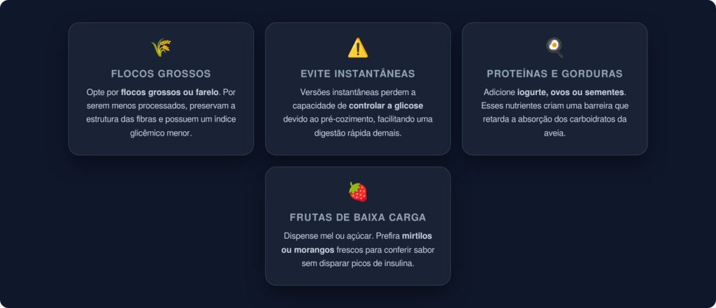 Algumas estratégias simples ajudam a extrair o máximo benefício da aveia sem provocar elevações bruscas de açúcar no sangue. Confira as melhores práticas: