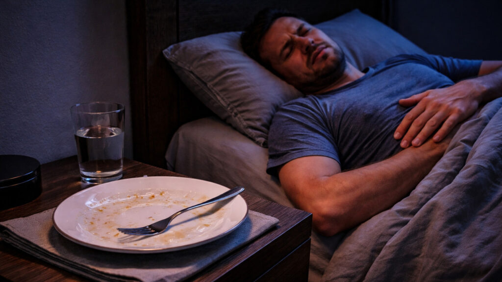 Saiba como seu corpo reage na hora de dormir quando você janta muito tarde.