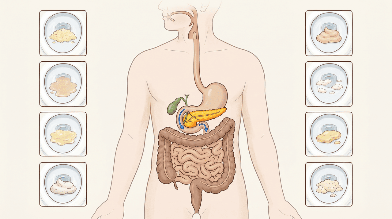 O pâncreas produz a lipase, uma enzima responsável por quebrar as gorduras dos alimentos durante a digestão. Quando o órgão não consegue produzir essa enzima em quantidade suficiente, a gordura passa pelo intestino sem ser absorvida e é eliminada nas fezes. O resultado são fezes oleosas, brilhantes, que flutuam na água e frequentemente são difíceis de dar descarga.