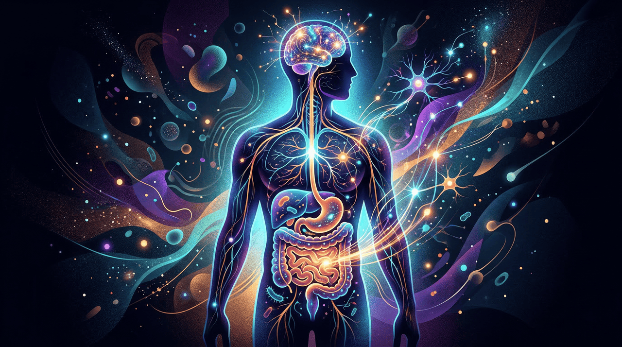 O intestino e o cérebro se comunicam de forma contínua por meio de uma rede de sinais que envolve o nervo vago, hormônios, células imunológicas e substâncias produzidas pelas bactérias intestinais. Esse sistema é chamado de eixo intestino-cérebro e funciona nas duas direções: o estado emocional afeta o intestino, e o intestino influencia diretamente o funcionamento cerebral.