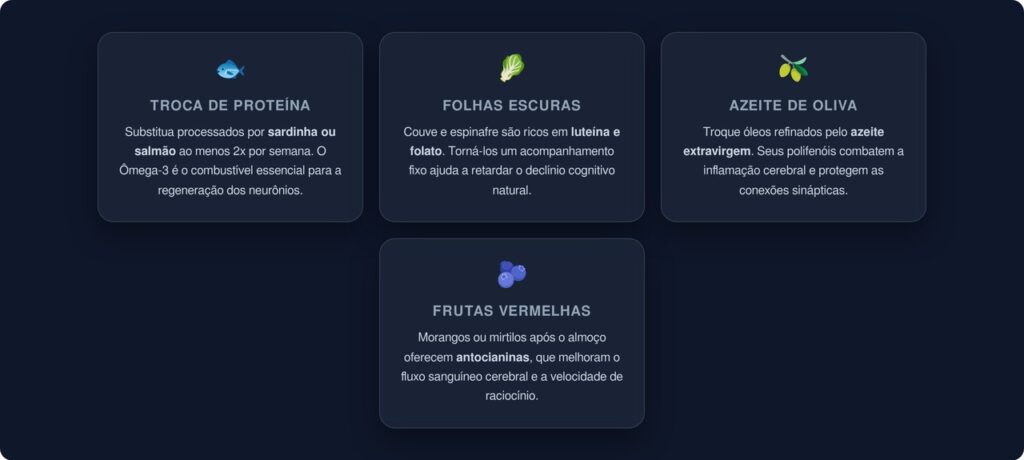 Não é preciso transformar a rotina para começar a proteger a memória. Pequenas substituições já fazem diferença ao longo do tempo: