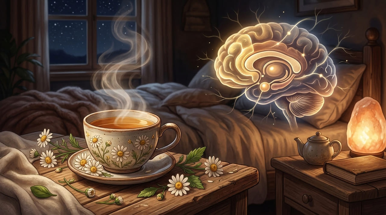 A camomila contém um composto chamado apigenina, que se liga a receptores no cérebro associados ao relaxamento e à redução da ansiedade. Esse mecanismo natural ajuda o corpo a se preparar para o descanso sem causar sonolência forçada ou efeitos colaterais comuns em medicamentos para dormir. O resultado é uma transição mais suave entre o estado de alerta e o sono.