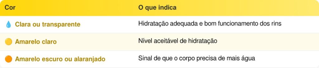 Existe uma forma simples e prática de verificar se a hidratação está adequada ao longo do dia. Basta observar a cor da urina a cada ida ao banheiro. Confira o que cada tonalidade pode indicar: