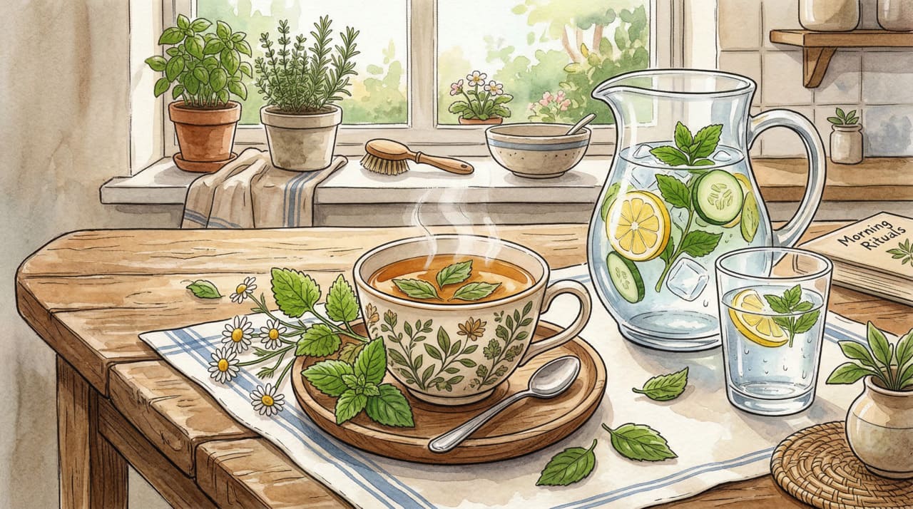 Chás diuréticos podem apoiar a função renal pela manhã.