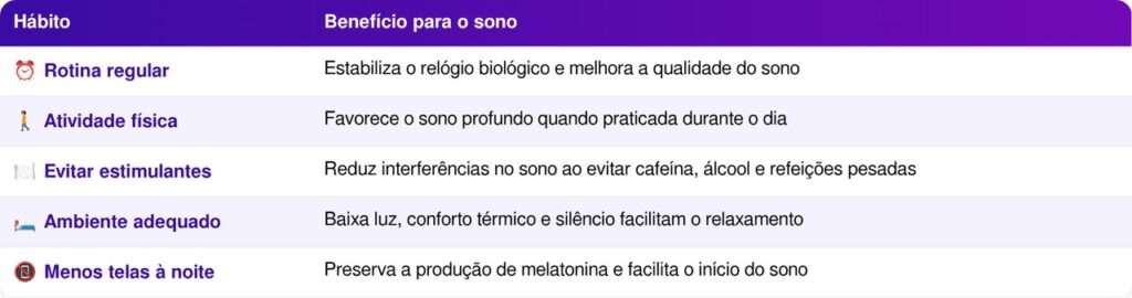 Pequenas mudanças na rotina diária podem trazer melhorias significativas na qualidade do sono. Confira algumas recomendações apoiadas por especialistas: