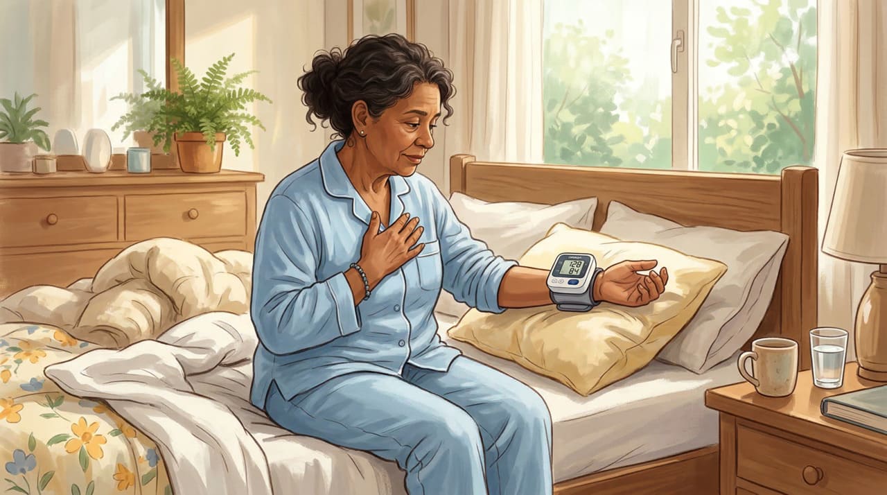 - Desidratação noturna: o sangue mais espesso exige maior esforço do coração ao acordar