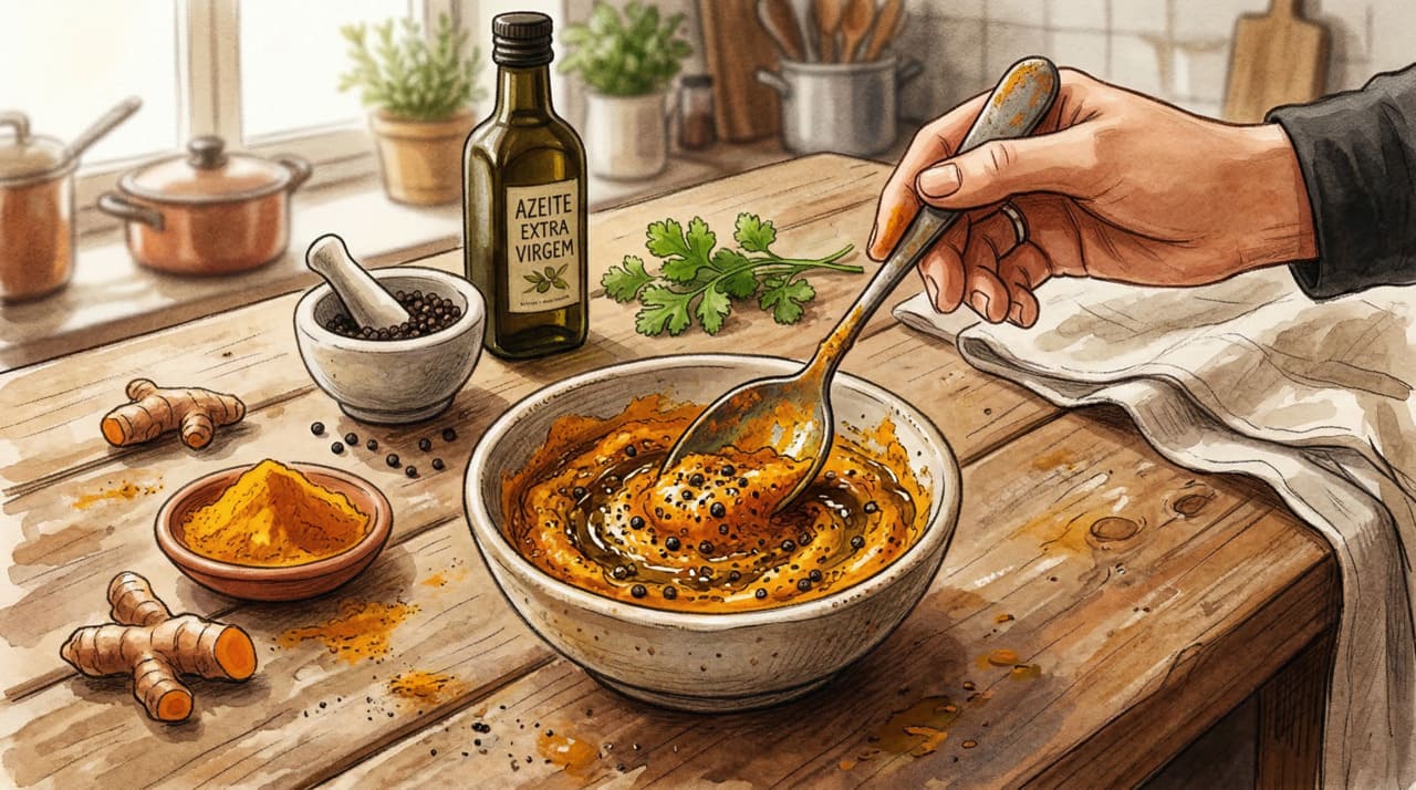 A junção com pimenta-preta + gordura é essencial para aproveitar seus benefícios.