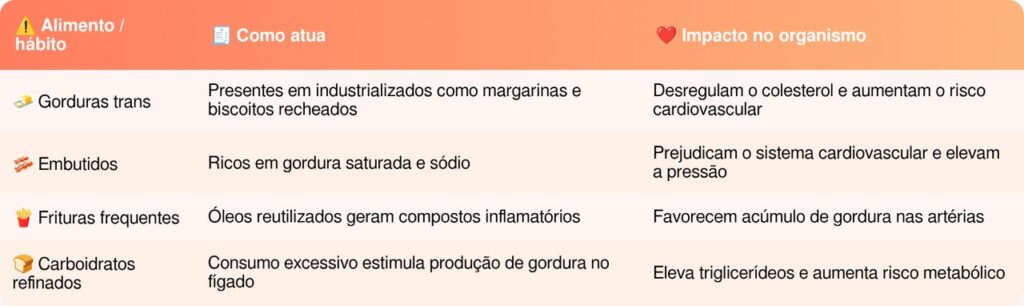 Alguns itens comuns na alimentação diária podem contribuir significativamente para o aumento do colesterol ruim. Os principais vilões incluem:
