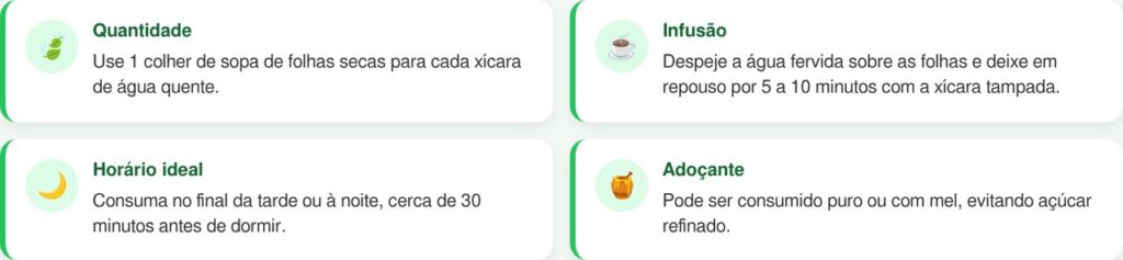 • Melhora da qualidade do sono: ajuda a adormecer mais rápido e a ter um sono mais profundo e reparador, especialmente quando consumida à noite.