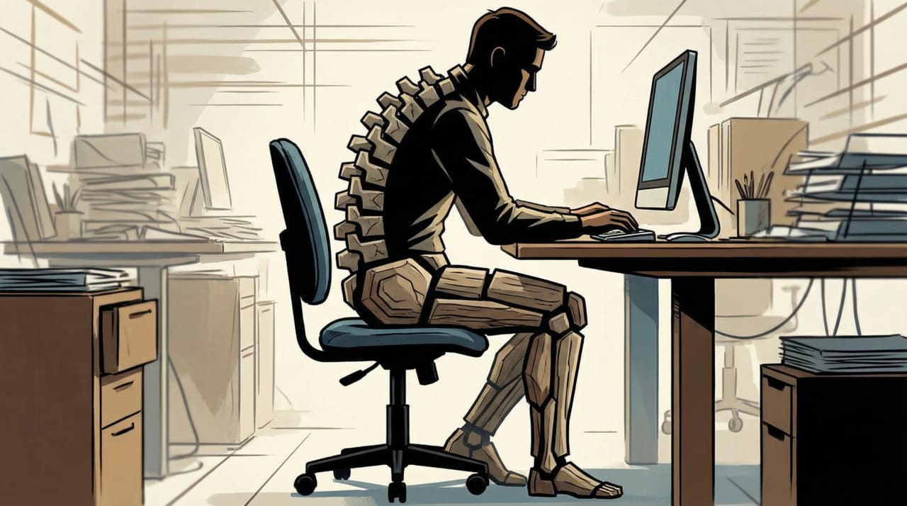 A postura prolongada sobrecarrega a coluna e enfraquece a musculatura.