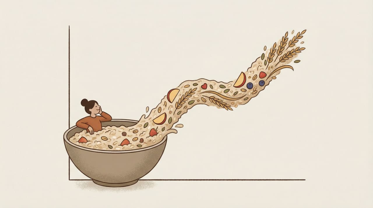 A aveia é rica em beta-glucana, uma fibra solúvel que, ao entrar em contato com a água no intestino, forma uma espécie de gel. Esse gel torna a digestão dos carboidratos mais lenta e reduz a velocidade com que a glicose chega à corrente sanguínea. O resultado é uma diminuição dos picos de açúcar no sangue após as refeições, o que favorece o equilíbrio glicêmico ao longo do dia.