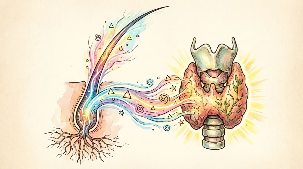 A relação entre os hormônios tireoidianos e a saúde do cabelo é amplamente sustentada por evidências científicas. Segundo a revisão “Impact of Thyroid Dysfunction on Hair Disorders”, publicada no periódico Cureus em 2023 por Hussein, Atia e Bin Dayel, tanto o hipotireoidismo quanto o hipertireoidismo podem causar queda difusa de cabelo, e os folículos capilares em fase de crescimento são particularmente sensíveis a pequenas variações nos níveis dos hormônios T3 e T4. A revisão reforça que os hormônios tireoidianos regulam diretamente a multiplicação celular nos folículos, a produção de queratina e até a pigmentação dos fios.