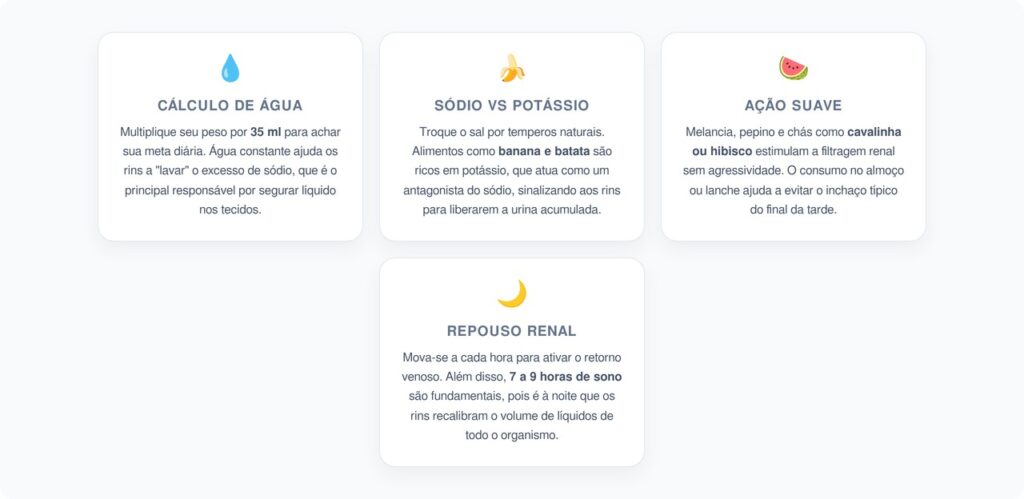 Chegar ao fim do dia com pernas inchadas, sapatos apertados e a sensação de peso no corpo é mais comum do que parece, especialmente entre quem passa horas sentado no trabalho. A retenção de líquidos acontece quando o organismo acumula mais água do que consegue eliminar, e os rins são os principais responsáveis por esse equilíbrio. A boa notícia é que algumas estratégias simples e naturais podem ajudar esses órgãos a funcionarem melhor, reduzindo o inchaço e protegendo a saúde renal ao longo do tempo.